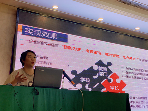 北京智云達(dá)資深產(chǎn)品經(jīng)理錢瑞,為各位參訓(xùn)學(xué)員分享了智云達(dá)在校園餐飲食品安全保障中的智能化解決方案,得到了省教育廳領(lǐng)導(dǎo)的認(rèn)可。智云達(dá)作為國(guó)內(nèi)領(lǐng)先的食品安全快檢產(chǎn)品、檢測(cè)服務(wù)以及信息化構(gòu)建的供應(yīng)商及服務(wù)商,為校園餐飲食品營(yíng)養(yǎng)與安全提供保障,打造了集“食品溯源-明廚亮灶-快速檢測(cè)-校園餐飲營(yíng)養(yǎng)與安全監(jiān)管-第三方檢測(cè)服務(wù)-食品安全保險(xiǎn)”于一體的智能化系統(tǒng),可實(shí)現(xiàn)可視感知、節(jié)點(diǎn)預(yù)警、過(guò)程監(jiān)督、事后追溯的綜合保障。