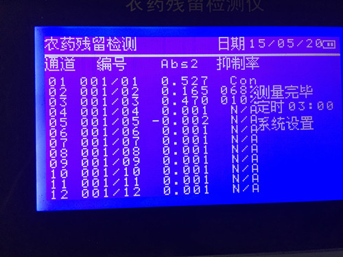 靜置時間結束后,立馬加入20ul底物并迅速轉移到農殘檢測儀中進行檢測,通過3min檢測我們知道2號茶葉的酶抑制率超過50%,視為農殘超標。