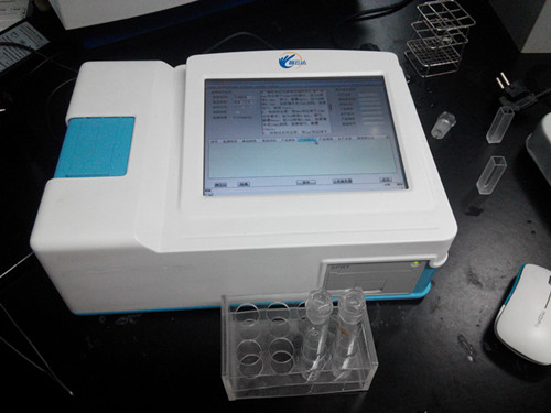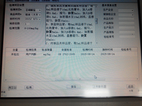 將取好的樣本加水稀釋后,進行震蕩,固態(tài)樣本盡可能的釋放亞硝酸鹽,搖晃后靜置5min,之后將稀釋液移取1ml到裝好檢測試劑的離心管中進行檢測